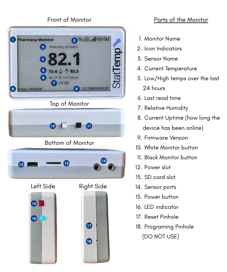 This guide provides a brief overview of the Stat Temp monitor, including button functions and key indicators to help you operate the device efficiently.
