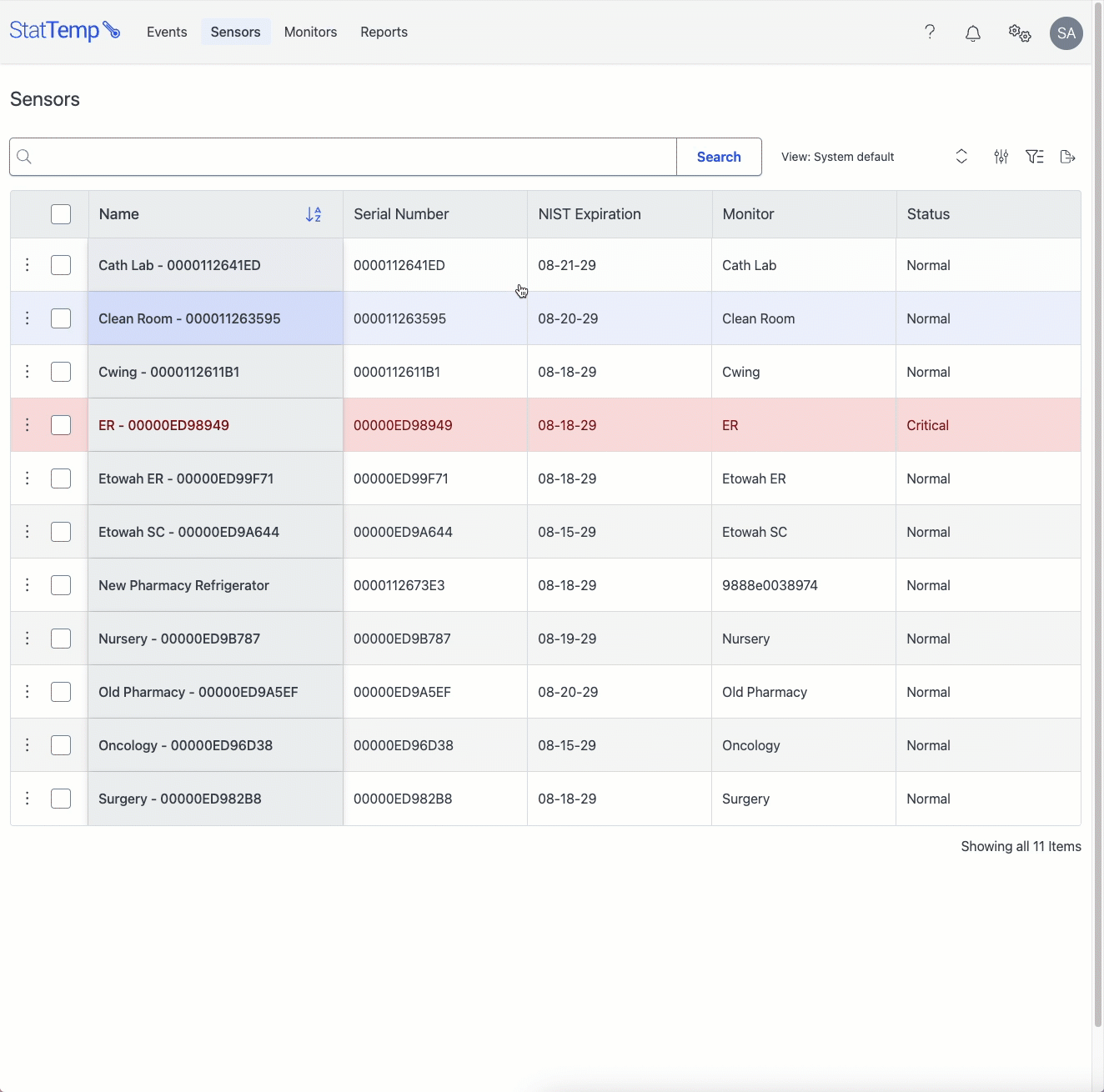 All Stat Temp data grids are fully interactive, customizable tables that allow you to organize, analyze, and export your data the way you prefer. Every user can create and save their own personalized views, including sorting, filtering, column layout, and export format.