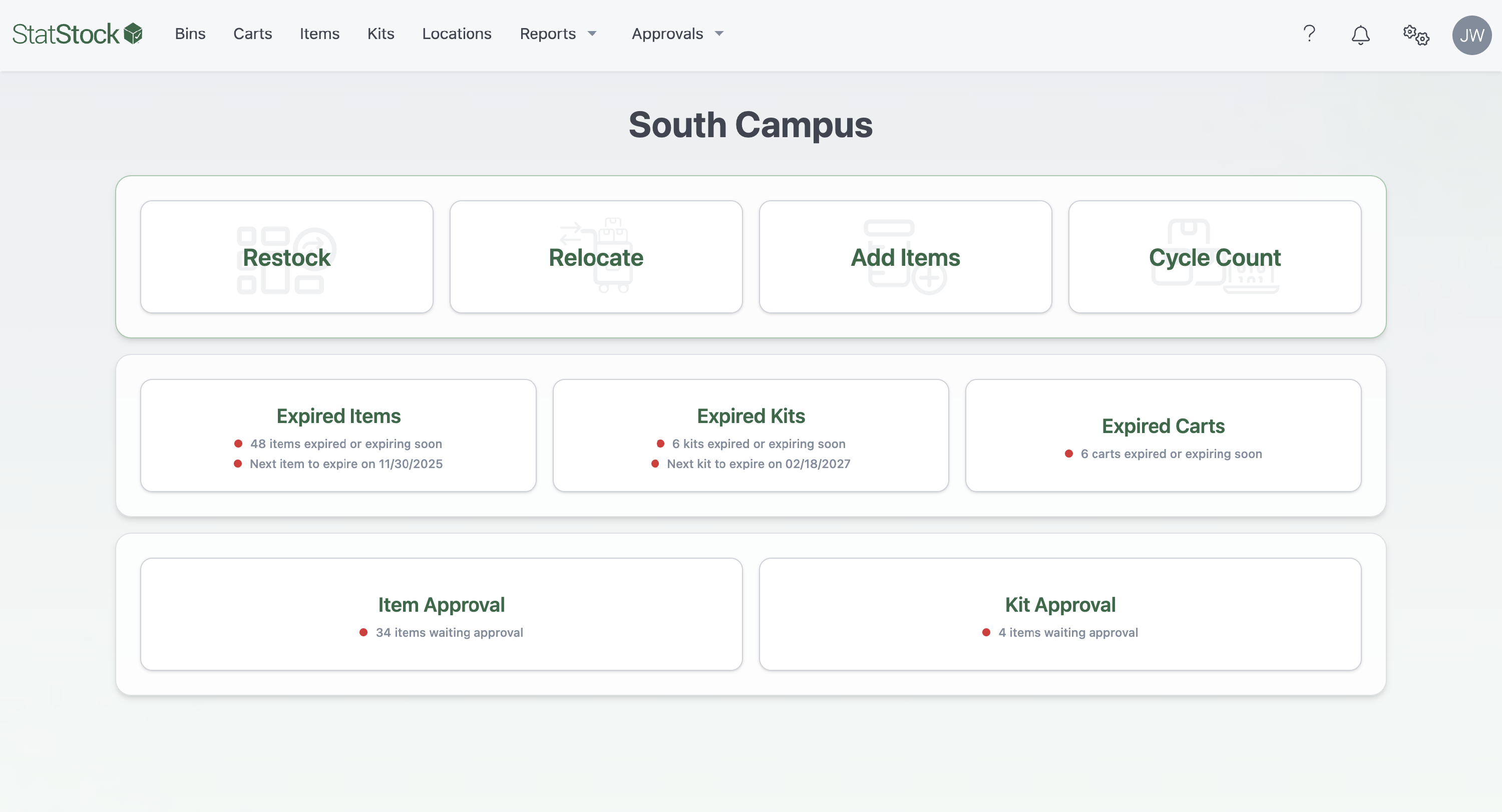 This Stat Stock update introduces a refreshed dashboard design! You’ll still find all of your familiar action items but now is enhanced with our new dashboard widgets for items, kits, and carts.