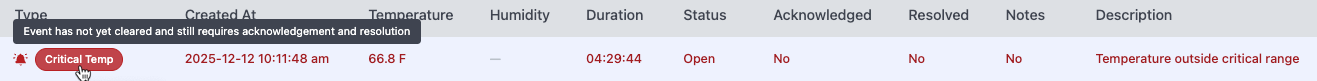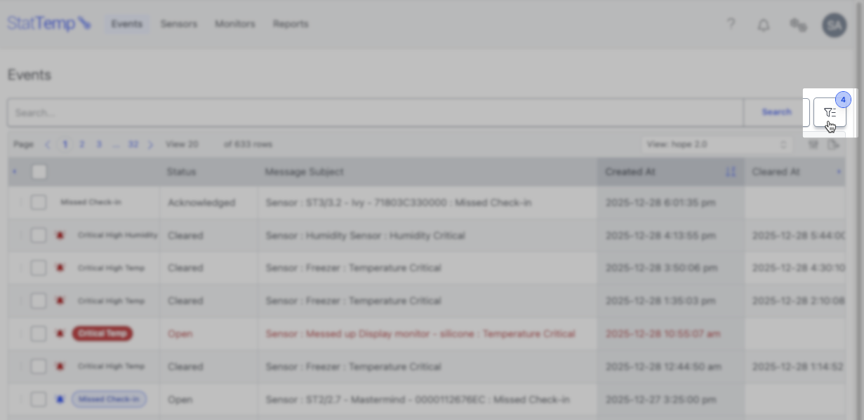 The Events data grid is the primary workspace for monitoring, prioritizing, and responding to events in Stat Temp. It is designed to help you quickly understand what is happening across your site and take action efficiently—often without needing to open individual events.