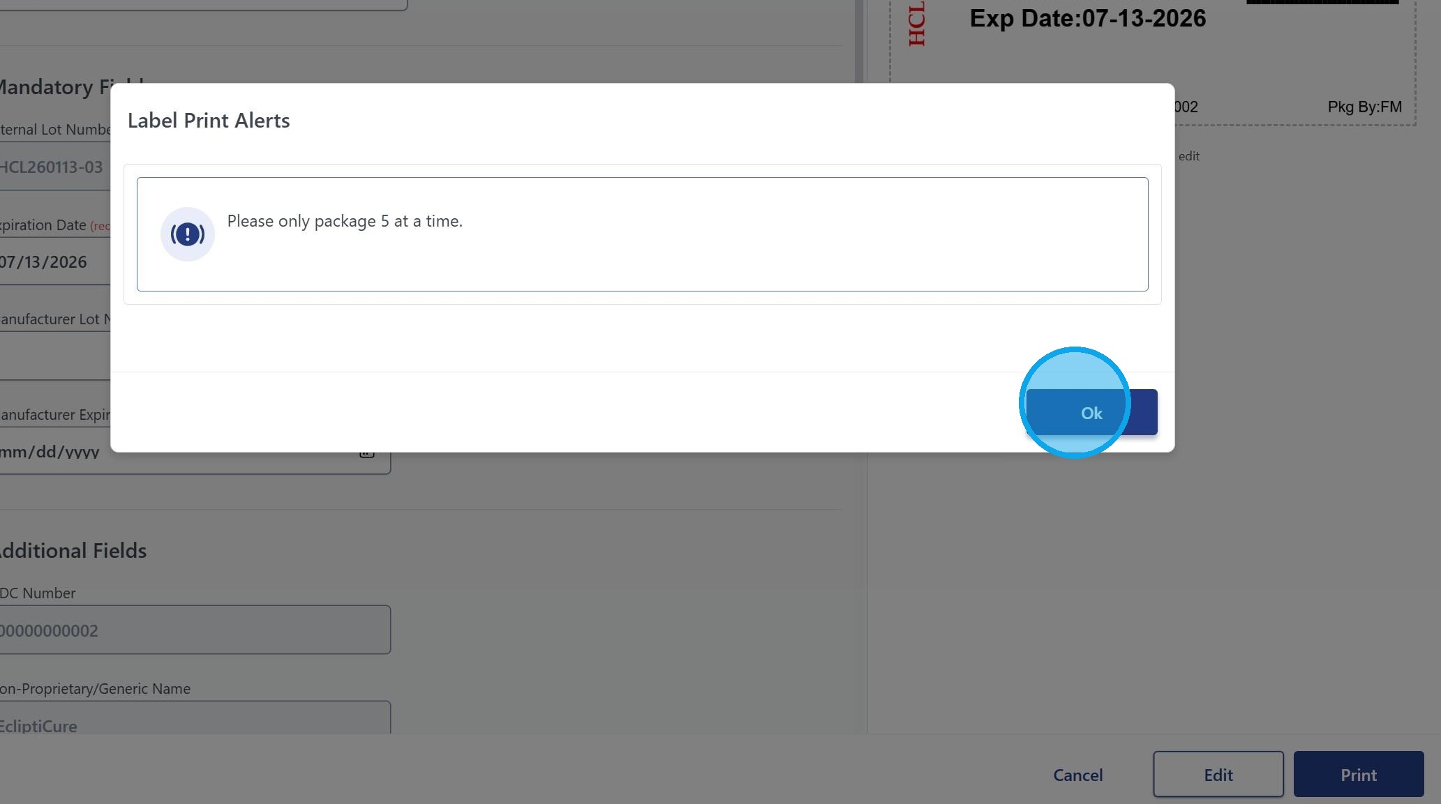 7. Example of an alert tied to a specific label.