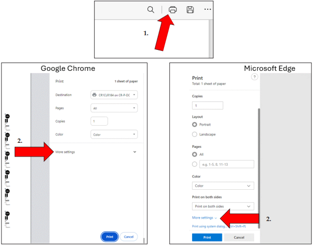 1. Click the printer icon to print (or press CTRL + P).
